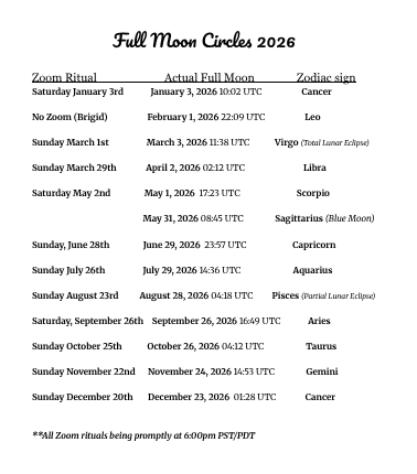 There is no charge for full moon circles. If you wish to make a donation to support these monthly gatherings, click Donate and follow the instructions to donate via PayPal or a debit/credit card. Please include a note “For ChaliceMoon full moon circle.” Thank you.